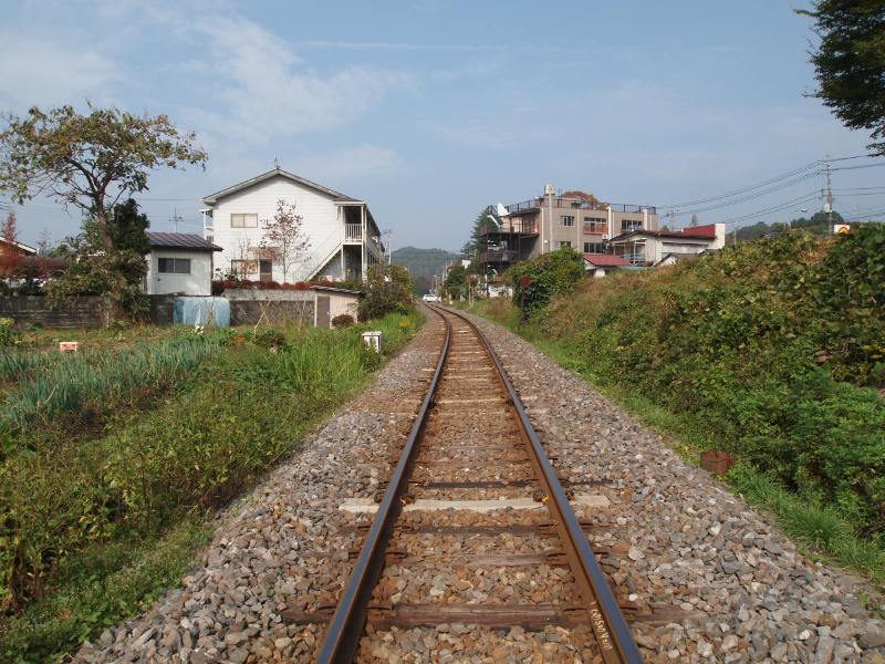 線路の真上で撮りました。ごめんなさい。踏切じゃないんです。線路侵入しました。ごめんなさい。でもだって、1時間に1本なんだもの・・・。普通です。JR水郡線です。茨城水戸~福島郡山までを結びます。単線です。2~3両くらいです。いつの間にか、最新型のディーゼル車両を導入したらしいです。