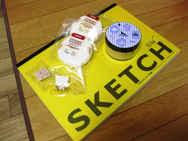 ピアス2つ。丸井でなので、こっちも割引。しかも「ポイントがもうすぐ失効してしまうのですが・・・」と言われたので、1000円分使ってかなり安くなりました。あと無印でパフ。もふもふで気持ちいいのよー。西武無印は改装のため全品10%OFFやってます。他に買っておくものないかな、文房具とか。