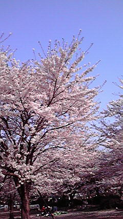 携帯からなので今日撮った写真でも。満開の桜。もう散り始めていて、風が吹くと桜吹雪が見られて幸せ。