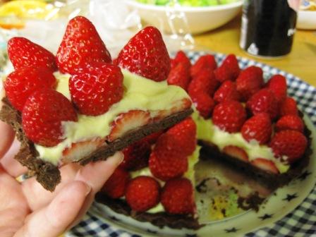 いつもはプレーンのタルト台だけど、この間の残りのココアパウダー使ってココアのタルト台にして。カスタードクリームも勿論手作りですよ。作ってないのはイチゴだけ。